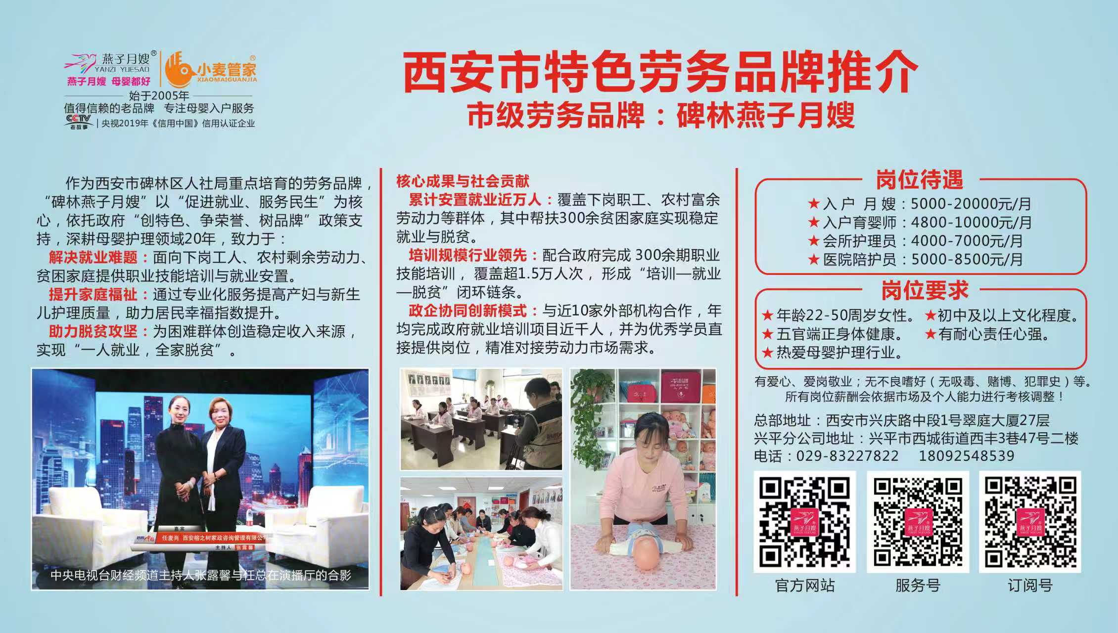 西安燕子月嫂是西安榕之樹家政咨詢管理有限公司旗下品牌,專注月嫂服務,育兒嫂服務,月嫂培訓。聯系電話:02983227822